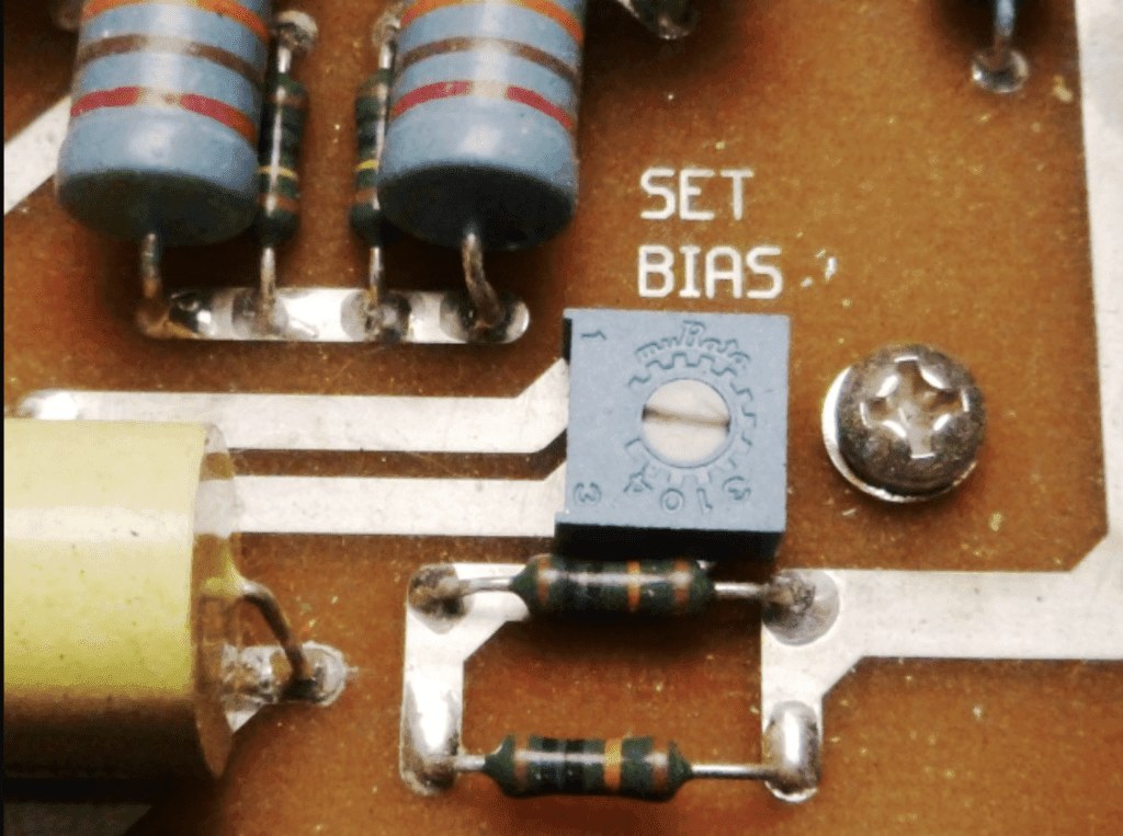 El bias es la corriente de polarización negativa que circula desde el cátodo al ánodo de las válvulas de potencia. Esta corriente, medida en miliamperios (mA), determina cuánta energía disipa la válvula en forma de calor y directamente influye en el sonido y durabilidad del amplificador.